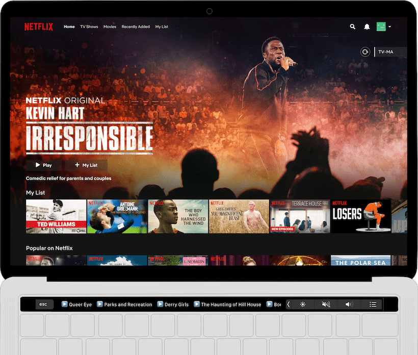 Simply scroll through a list of your recently watched shows on the Touch Bar, tap on the name of the show you want to watch, and boom! You're right back into your show.